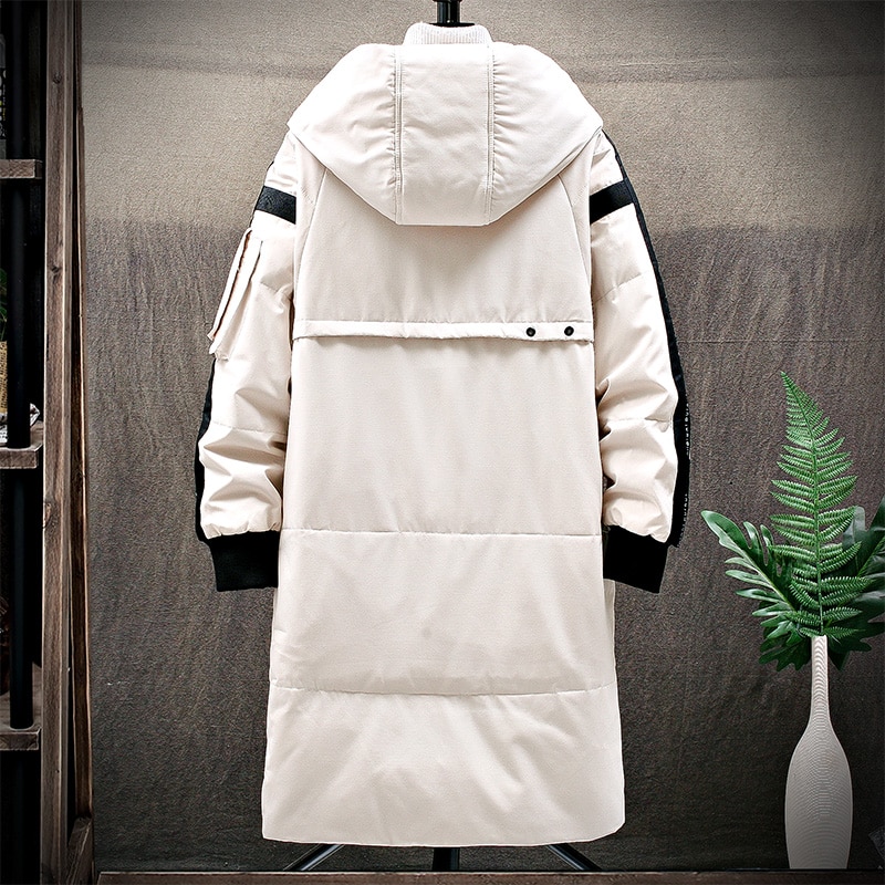 Warm Thick Men White Duck Down Jacket Hooded Puffer Jackets Coat Winter New Male Casual Long Parka Overcoat Outdoor Multi-pocket