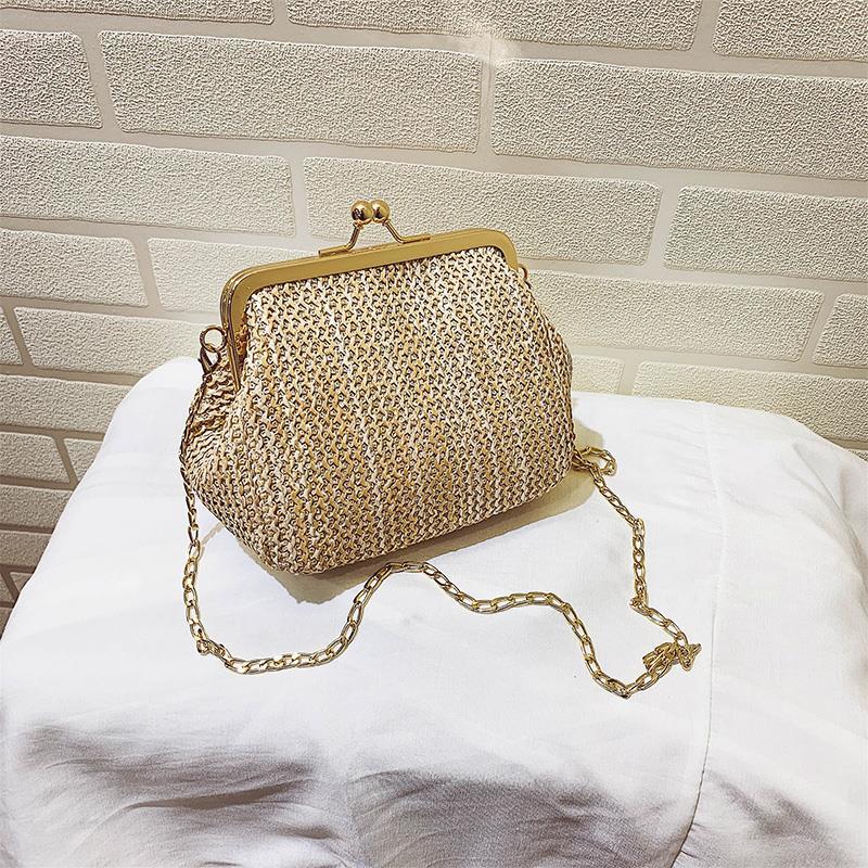 Chain Straw Kiss Lock Shell Women's Handbags Vintage Designer Bag Women Shoulder Crossbody Bag free shipping