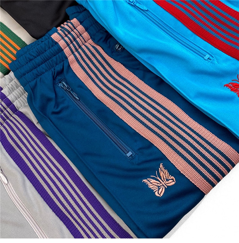 AWGE Needles Sweatpants Men Women 1:1 Top Quality Embroidered Butterfly Stripe Needles Pants Trousers