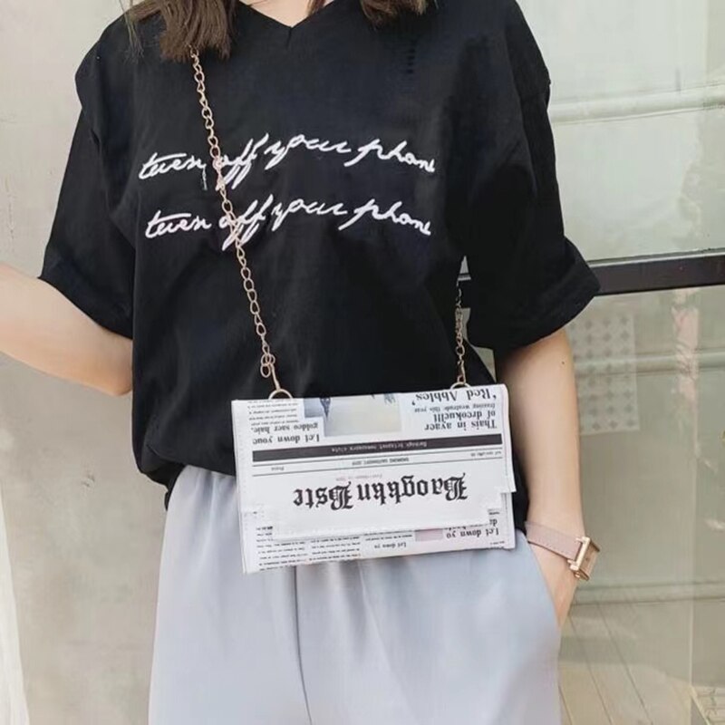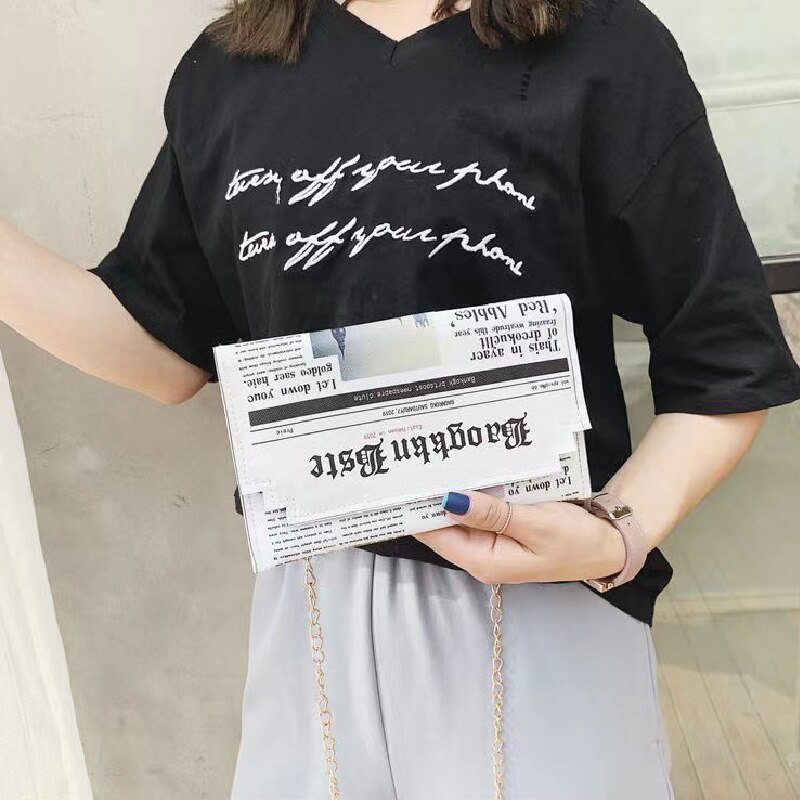 Women Joker Messenger Bag Chain Shoulder Bag Personality Fashion Small Square Newspaper News Styling Bags Wholesale Bolso Mujer