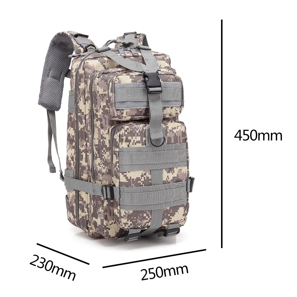 ![]() Multifunction 30L Outdoor Sports Waterproof Backpacks Large Capacity 3D Storage Rucksack Travel Hiking Climbing Knapsack Specification: Fabric: High density oxford waterproof fabric Lining: Nylon Color: Black, Camel, Army Green, Jungle Camouflage, ACU Size: 450x230x250mm/17.72x9.06x9.84in Weight: about 850g Volume: about 30L Uses: Leisure, sports, travel, exploration and other outdoor activities Notes: 1. Due to the different monitor and light effect, the actual color of the item might be slightly different from the color showed on the pictures. Thank you! 2. Please allow 1-3cm measuring deviation due to manual measurement. ![]() 1 X 30L Outdoor Backpack ![]() |