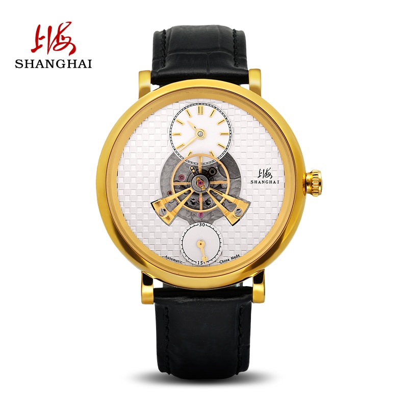 Shanghai Watch Mechanical Watch Men's Watch Casual Fashion New Product Center Flywheel Mechanical Watch Dome Mirror Series Sky W