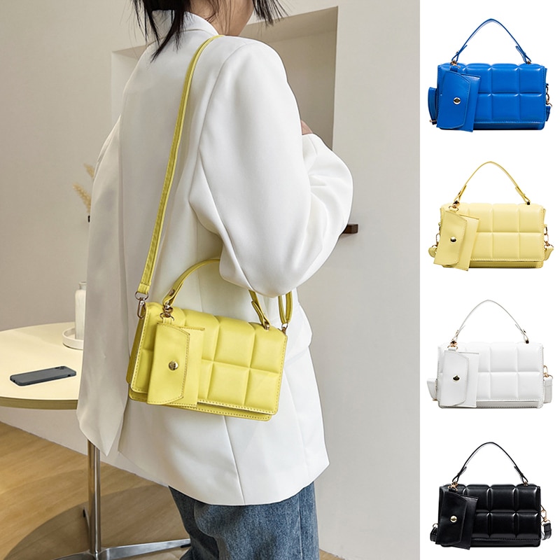 Fashion Women Shoulder Bag Summer Totes with Small Clutch Purse Ladies Solid PU Leather Designer Handle Crossbody Messenger Handbag