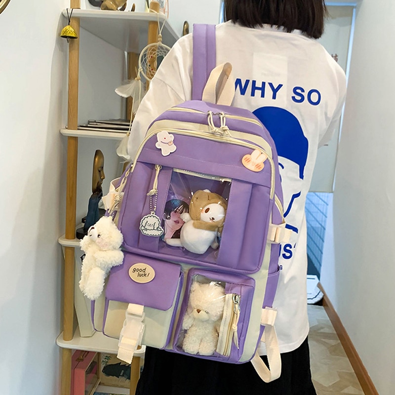 Buylor Kawaii Women Backpack Multi Pockets College Student Schoolbags Leisure Rucksack Streetwear Cute Harajuku Backpack Mochila