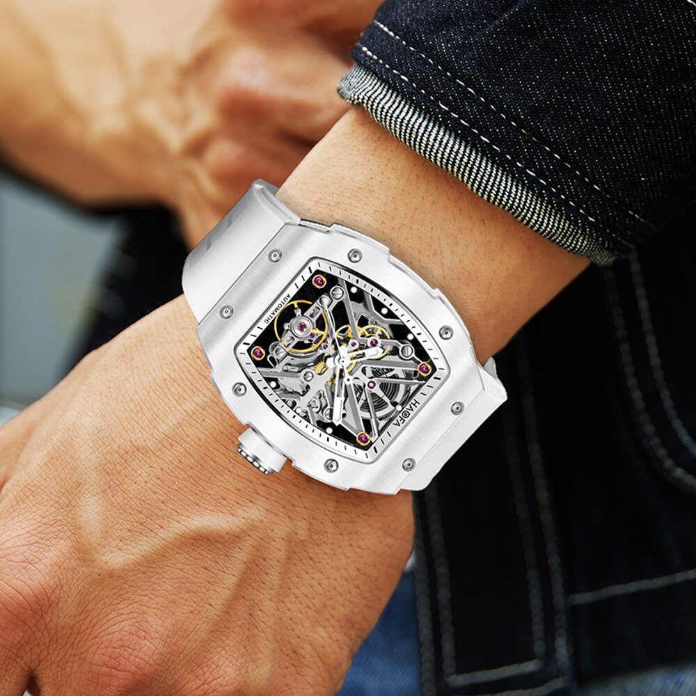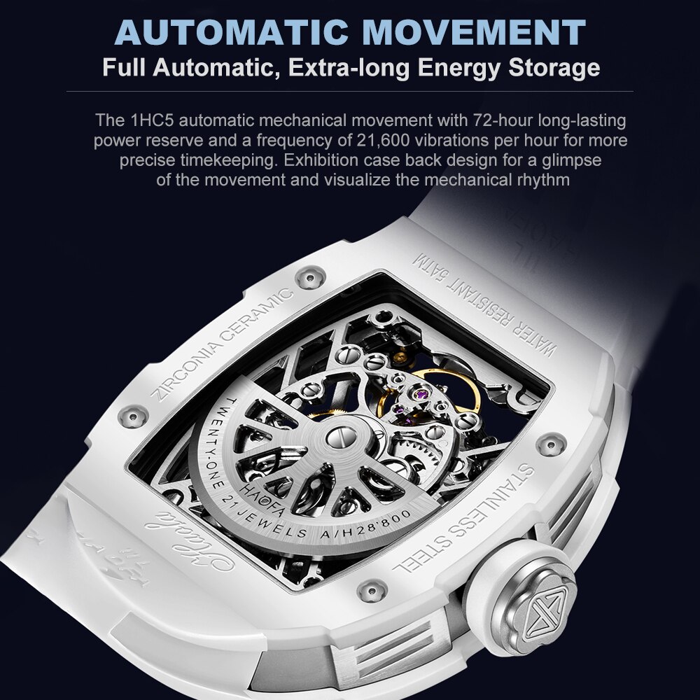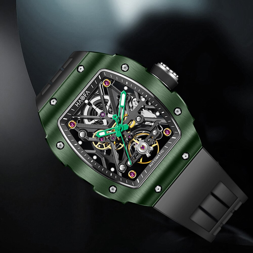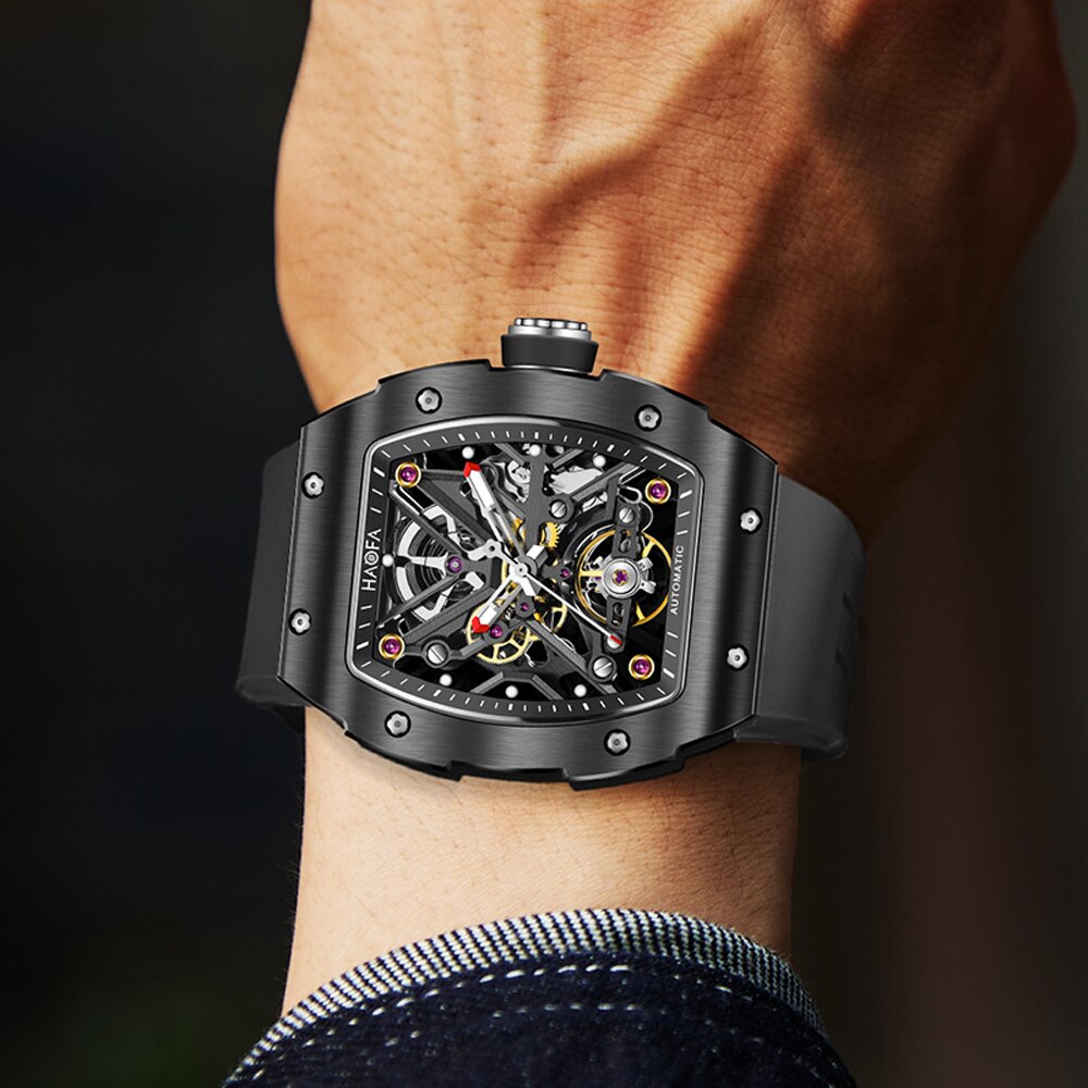 Haofa Skeleton Automatic Mechanical Watch for Men Ceramic Bezel Sapphire Luminous Waterproof Business Sport Self-Wind Watch 1988