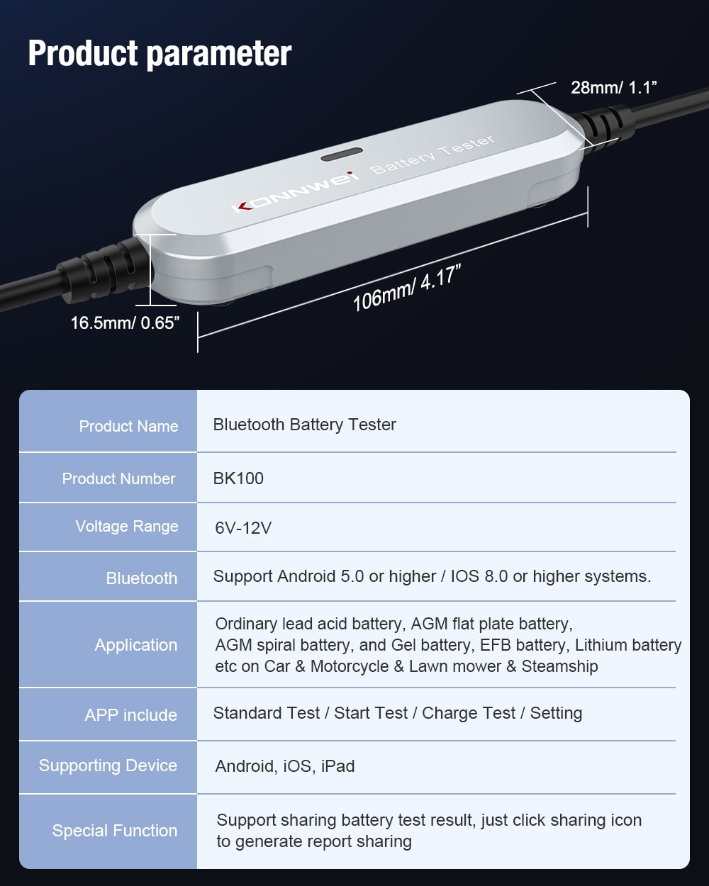 1*BK100 Bluetooth battery tester