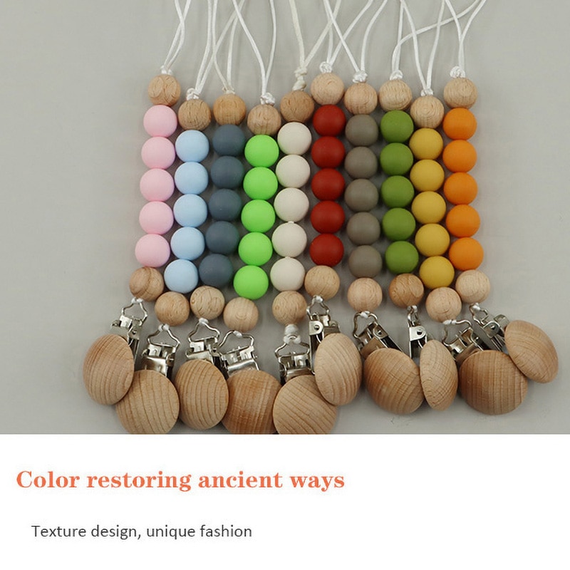 Modabebe Silicone Pacifier Chain BPA Free Baby Pacifier Anti-Drop Chain Wood Bead Pacifier Clips Dummy Chain