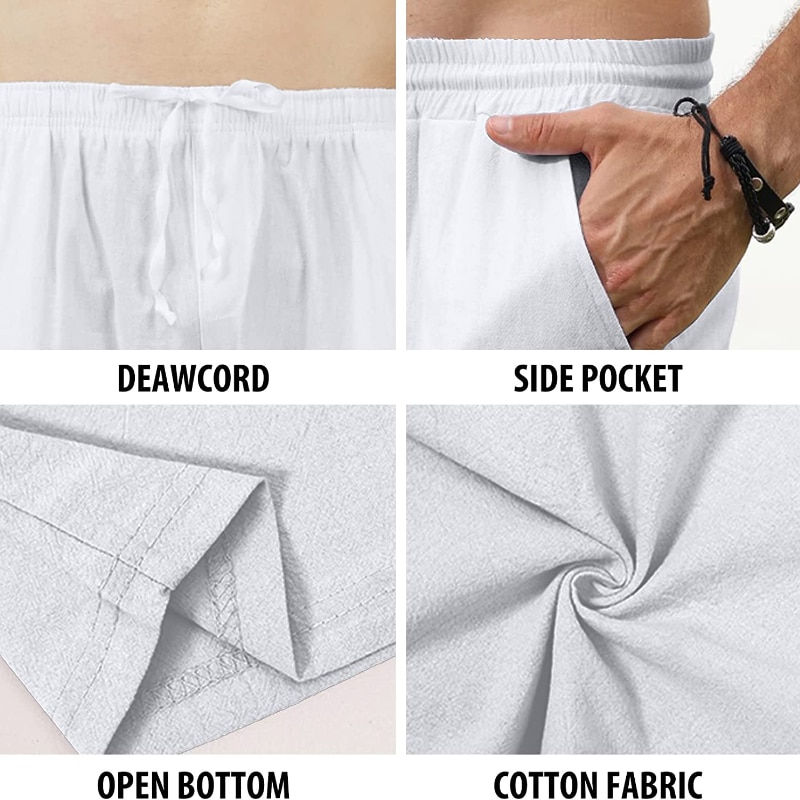 Breathable:Skin-friendly; Breathable; Cool; Comfortable; Sweat-absorbent; Relaxed.The lightweight and thin design will make you love this pants all year round