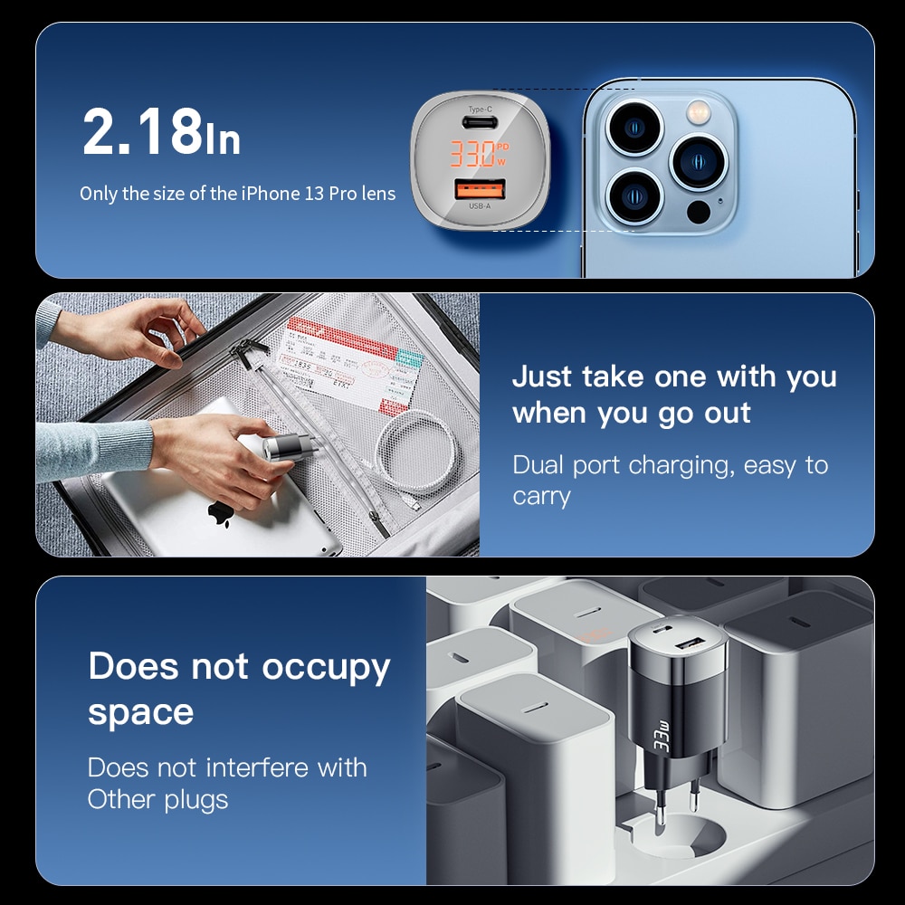 Essager 33W GaN USB C Charger Digital Display PD Fast Charging For iPhone 13 12 Max Pro iPad For Xiaomi Poco Samsung Charger