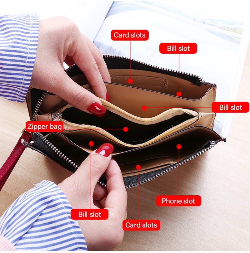 Women's Vintage Oil Wax Leather Zipper Clutch Wallet Female Large Capacity Coin Purse Ladies Wristband Simple Card Holder Wallet