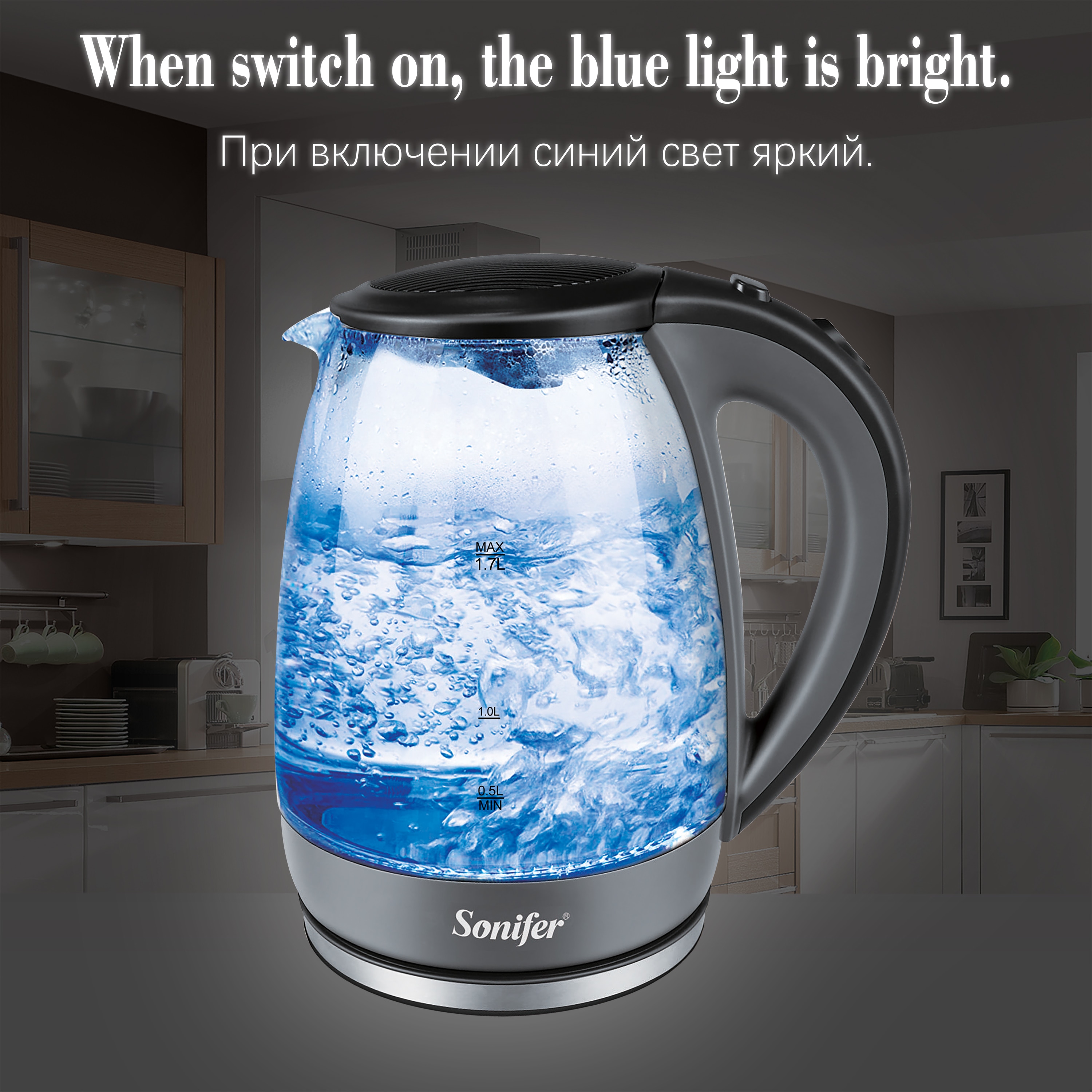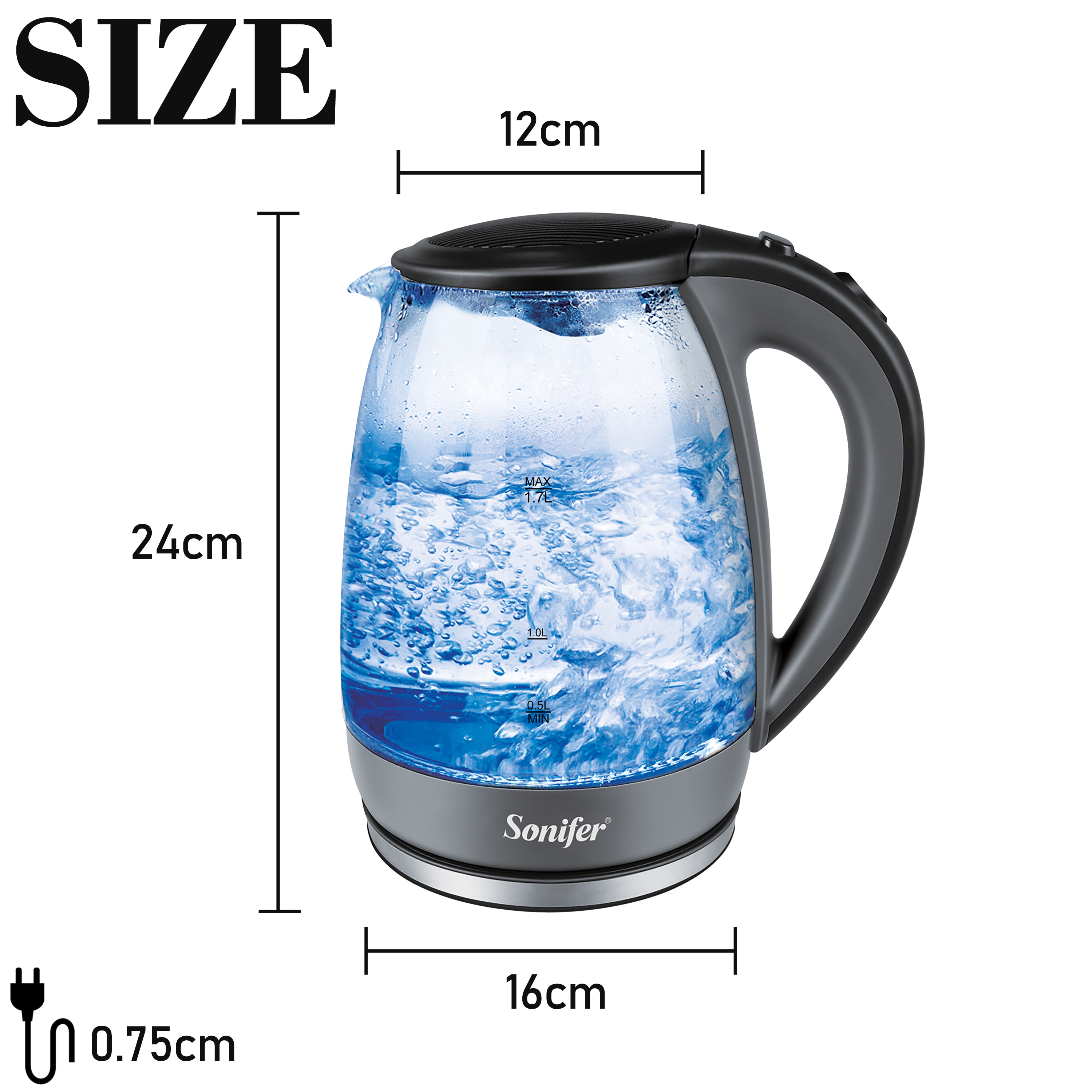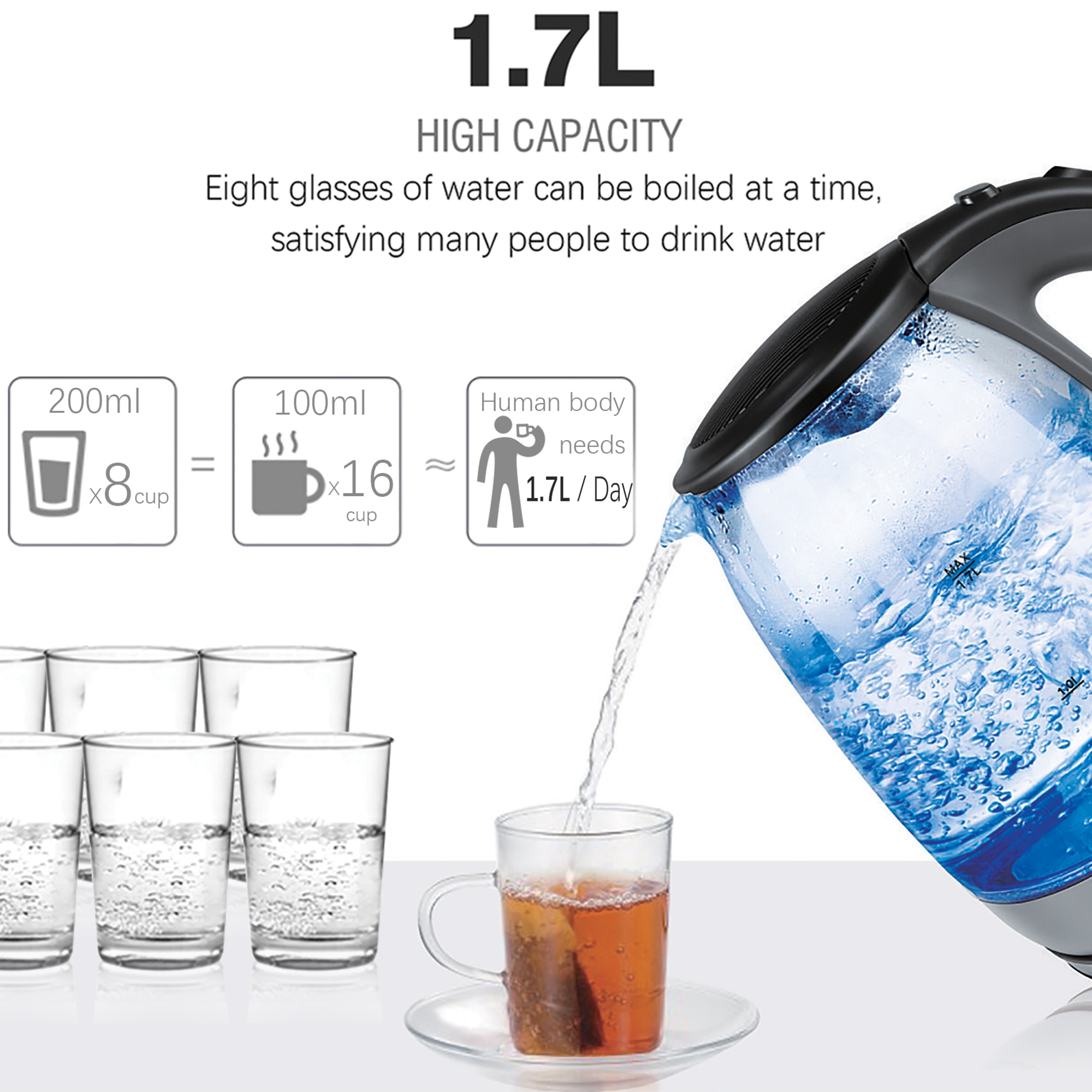 1.7L Glass Health Preserving Pot Electric Kettle with Led Lighting 2000W Quick Boiling Water Auto Shutdown Without BPA Sonifer