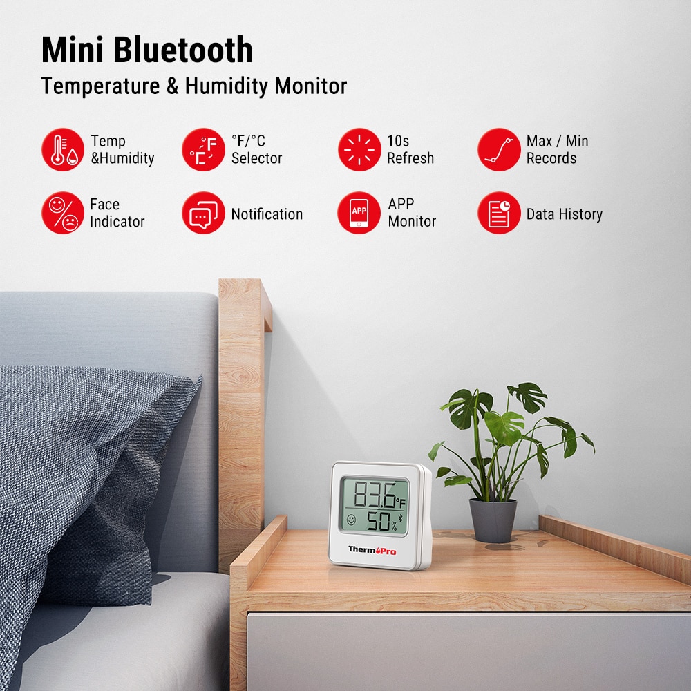 The phone app can get the temperature and humidity from the thermometer within 80 meters.