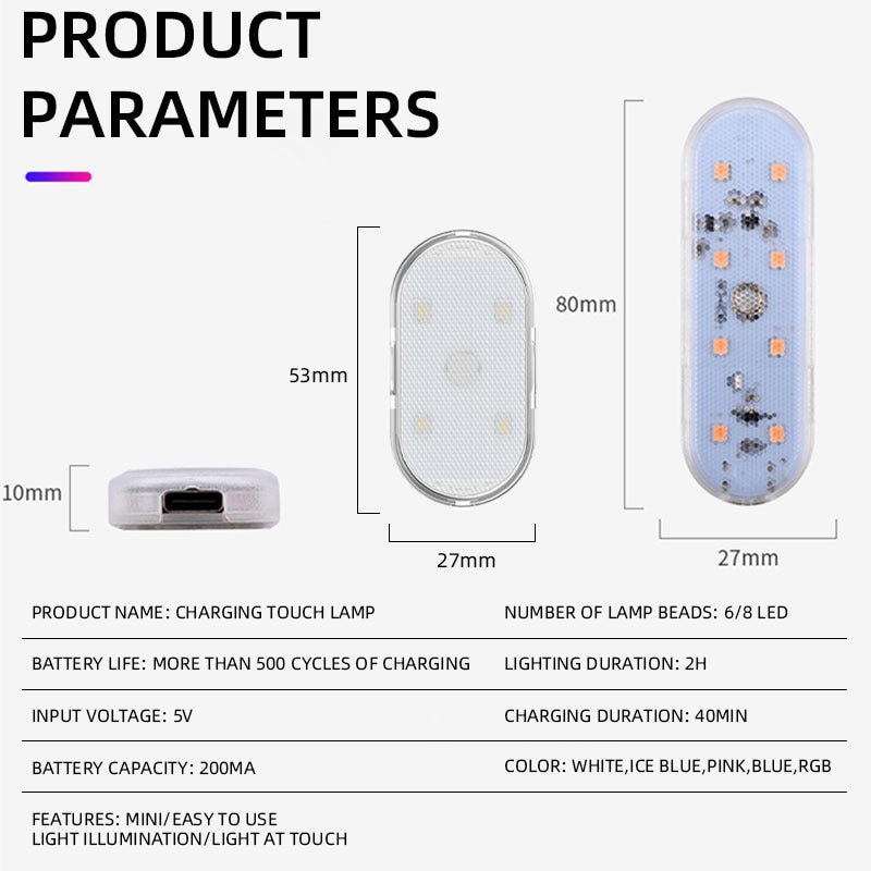 Package includes: 1pc USB rechargeable touch reading light (including data cable)