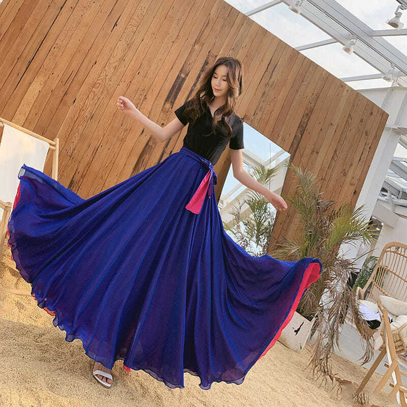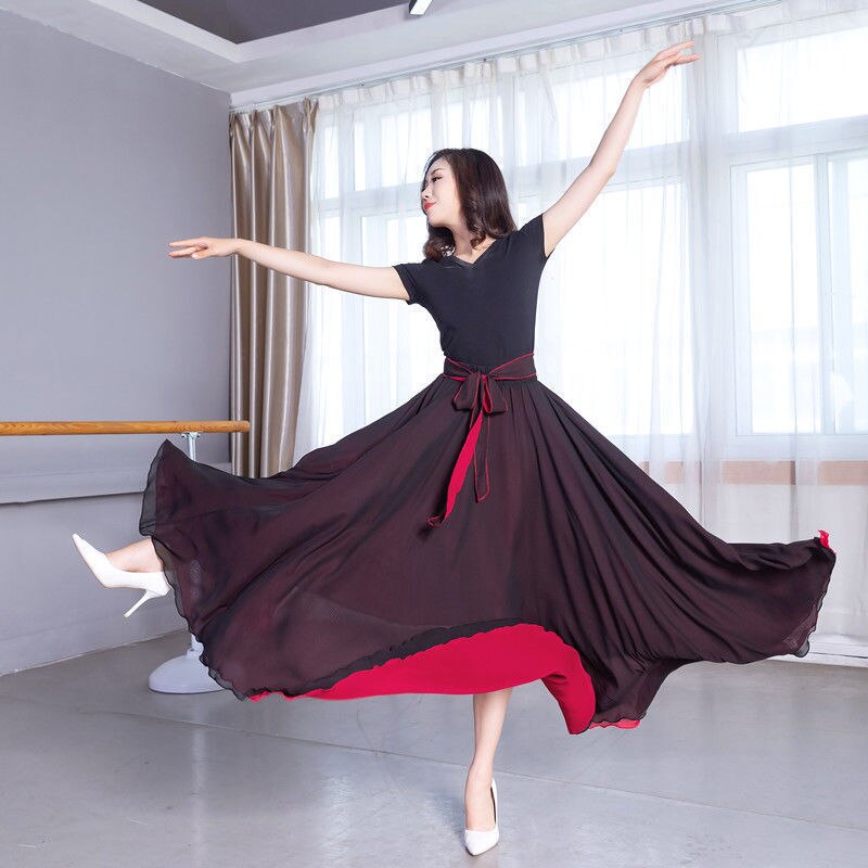 Double-sided swung chiffon skirt, dancing skirt with two-color 540-degree 8-meter long skirt inside and out