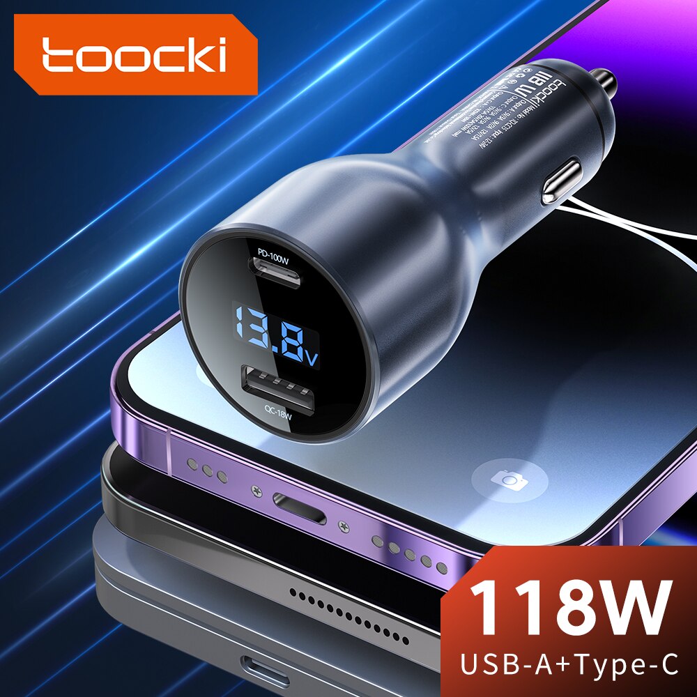 Toocki 120W Car Charger Type C USB Fast Charging PD3.0 Car Charger For iPhone 14 13 12 Samsung Xiaomi Macbook Laptop