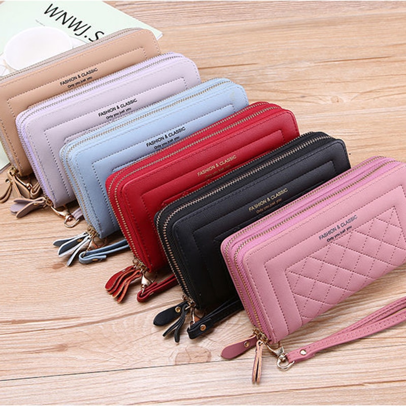 Long Women's Wallet Female Purses Tassel Coin Purse Card Holder Wallets Double Zipper Pu Leather Clutch Luxury Money Phone Bag