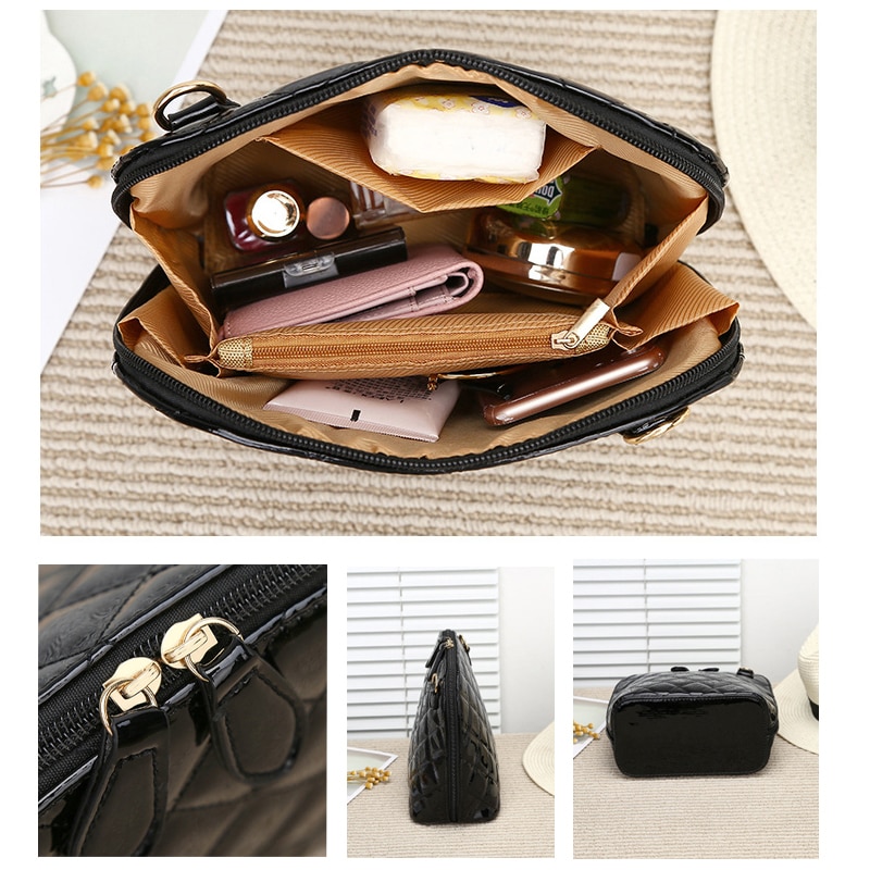 Hot New Plaid Women Bags High Quality Shoulder Bag Patent Leather Women Messenger Bags Casual Shell Crossbody Bag