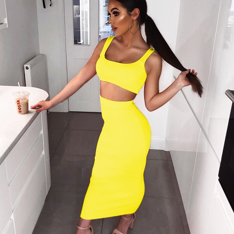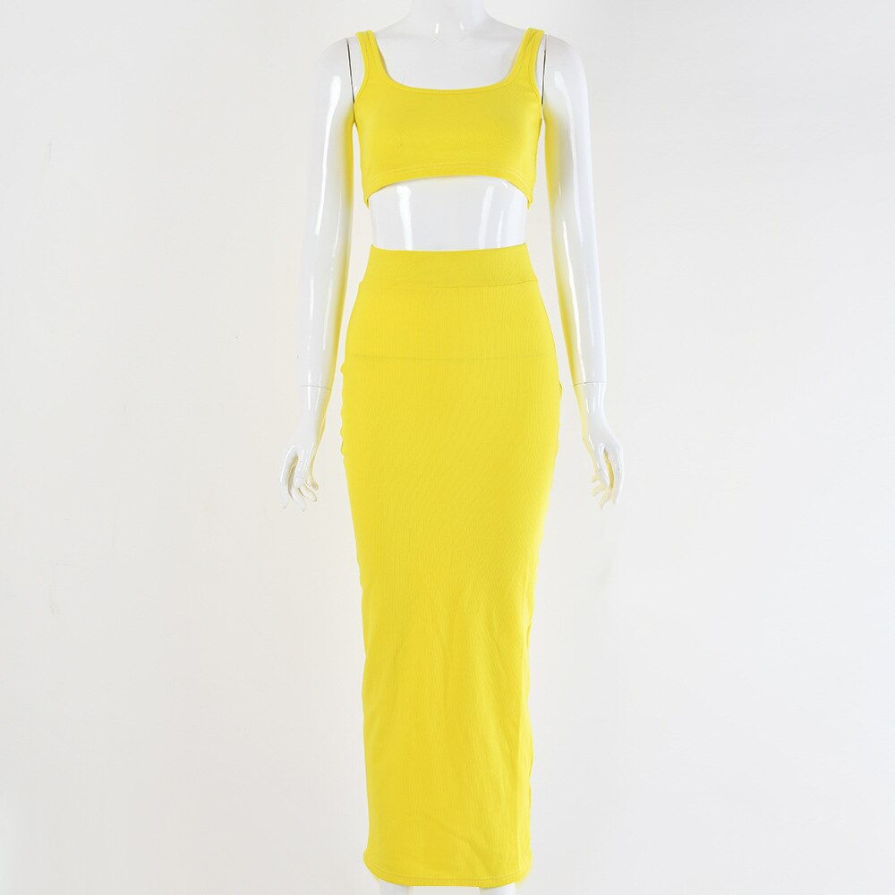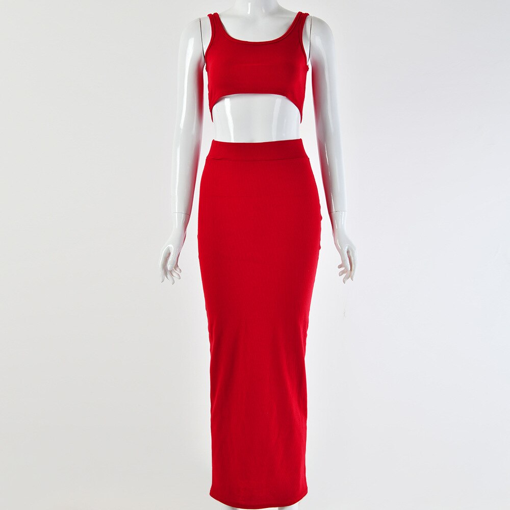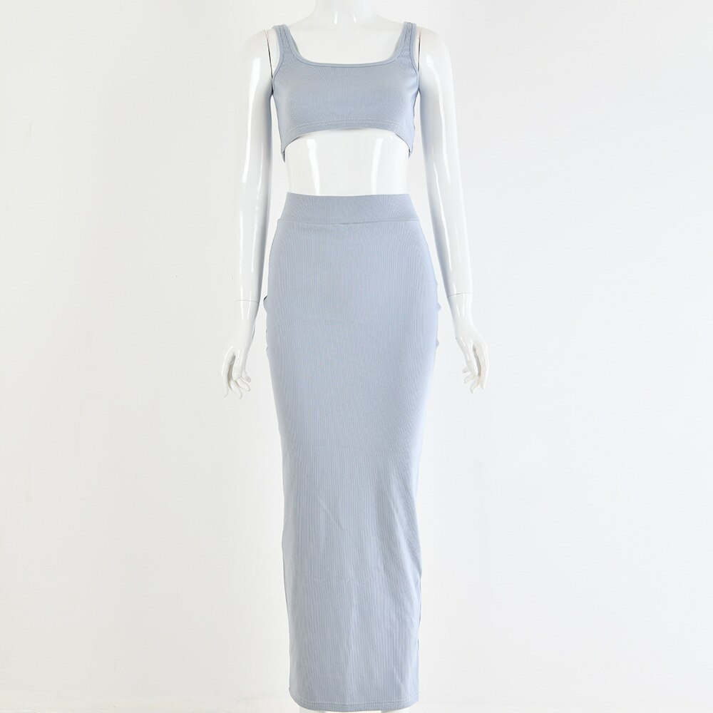 Articat Sexy Two Piece Set Women Sleeveless Backless Spaghetti Strap Crop Tops And Solid Maxi Dress Women Spring Summer