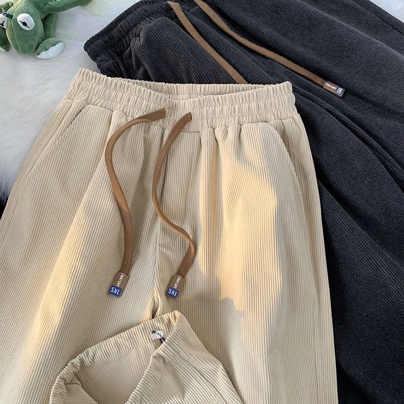 Casual Solid Color Korean Loose Straight Cylinder Sweatpants New Waist Drawcord Fashion Youth All-match Male Ninth Pants 2023