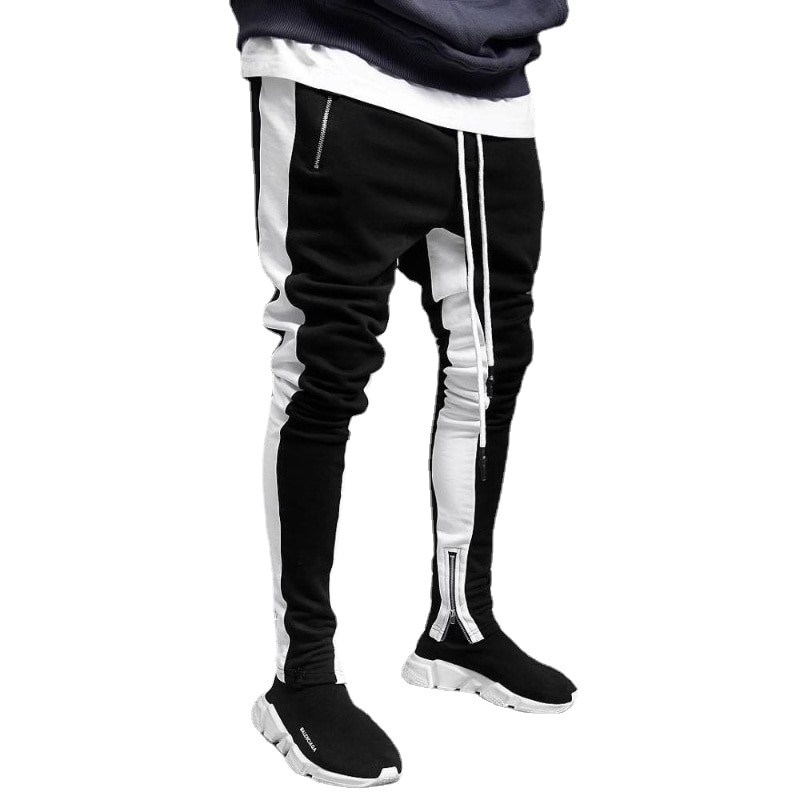 Mens Joggers Casual Pants Fitness Sweatpants Sports Track Pants Mens Zipper Drawstring Pants Black Gyms Trousers