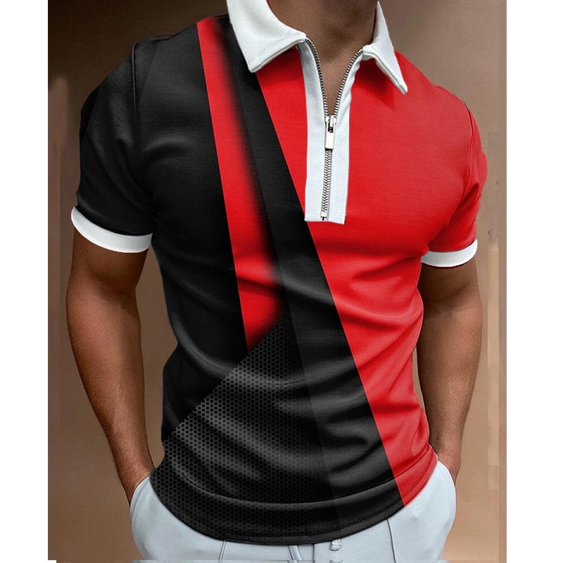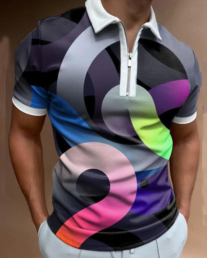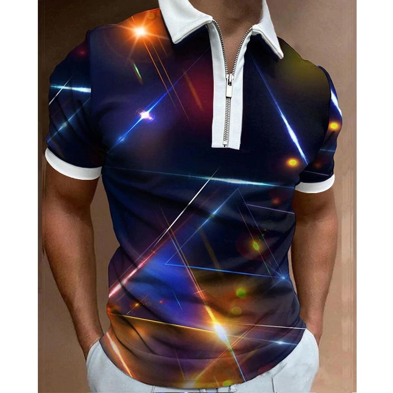 New geometric t-shirt multiple 3D printing short-sleeved pullover casual Harajuku oversized loose men's T-shirt button POLO