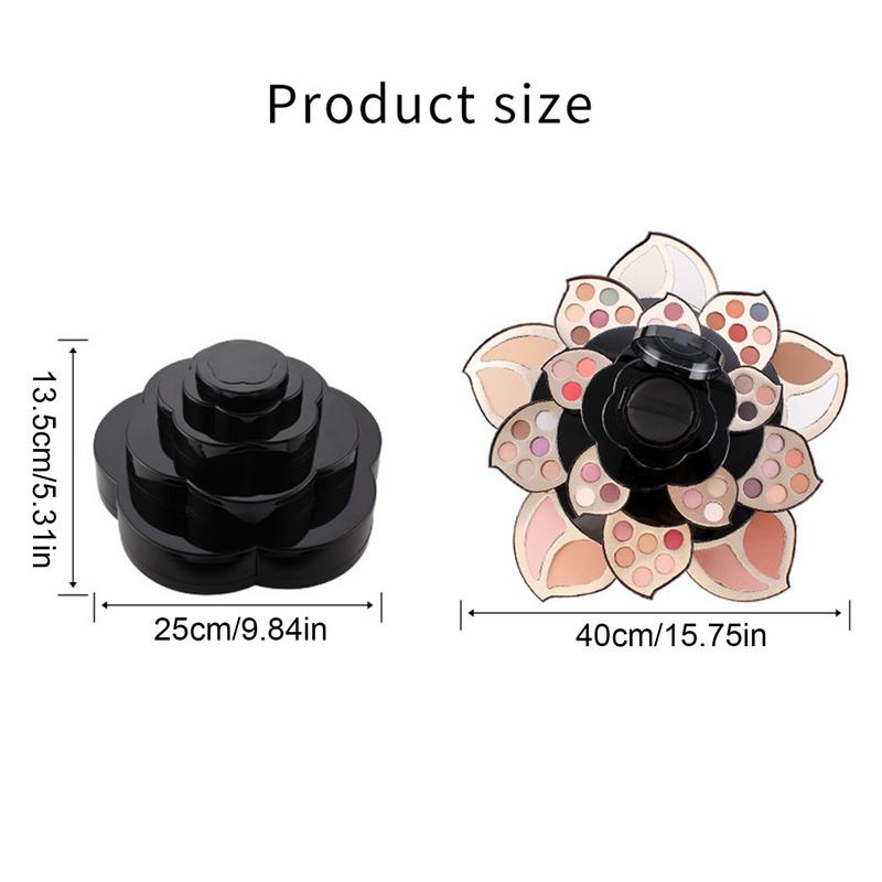 The all-in-one makeup kit contains highlighters, 45-color eye shadows, contouring powder, blush, BB cream, etc. Our unique flower makeup palette can be expanded to reveal a 3-layer makeup tray. The soft texture of the makeup palette can help you easily create a beautiful makeup look. A perfect holiday gift for women, girls, and teens.