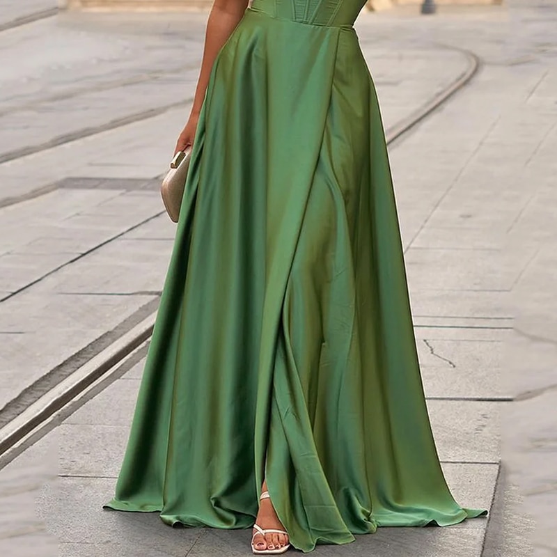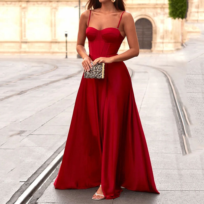 Ellafads Women Maxi Dress Summer Fashion Suspender Sleeveless Solid Nipped Waist Slim Backless Lace Up Satin Evening Dresses