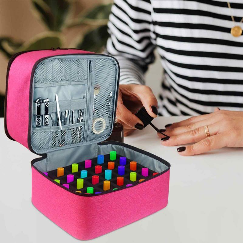 Easy to Carry Size: 25*20*19cm, you can easily put Nail Polish Organizer Case in your luggage. This sturdy nail polish travel case is perfect for nail lovers