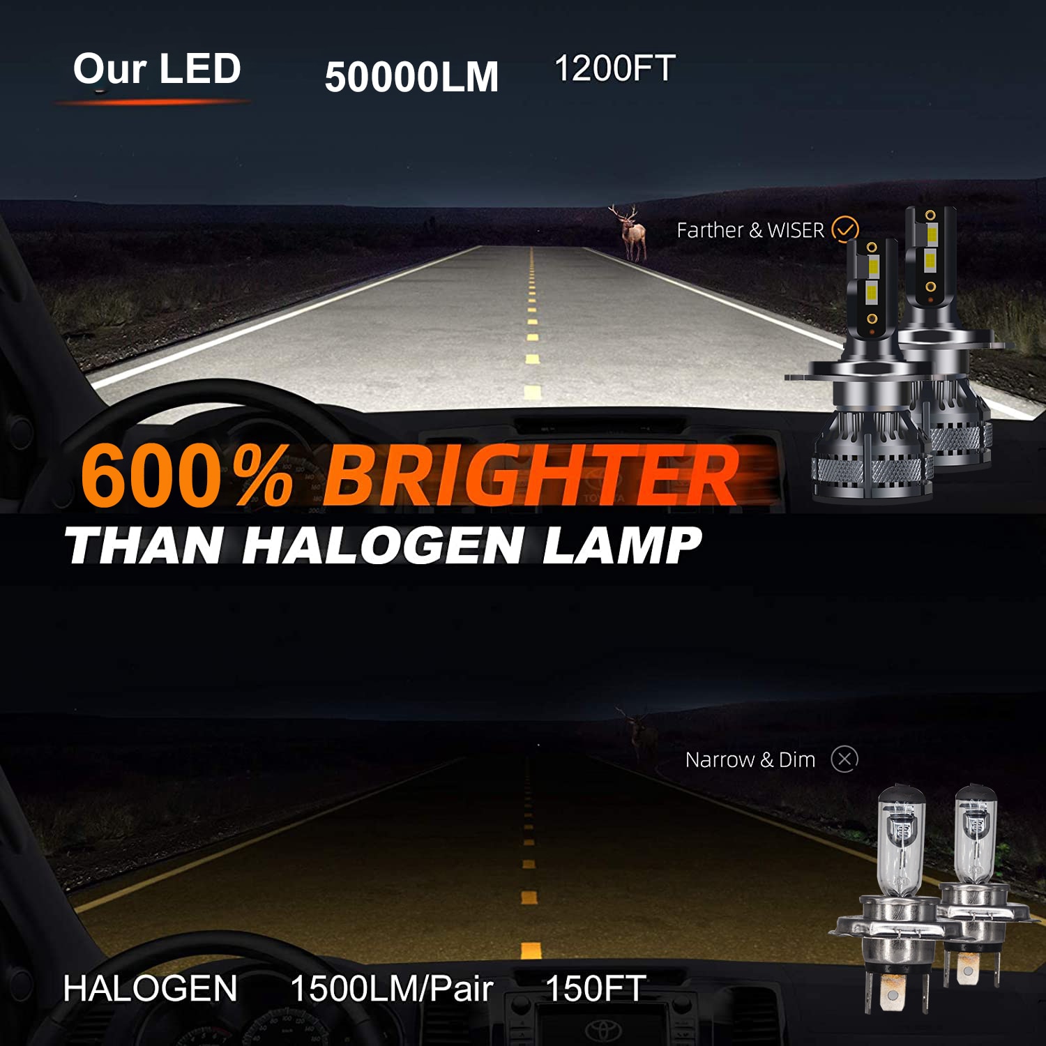 Lumen: 40000LM/Pair ,20000LM/Bulb