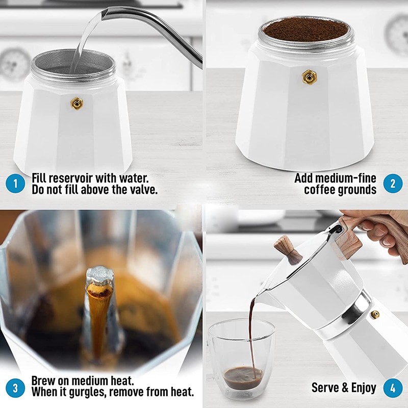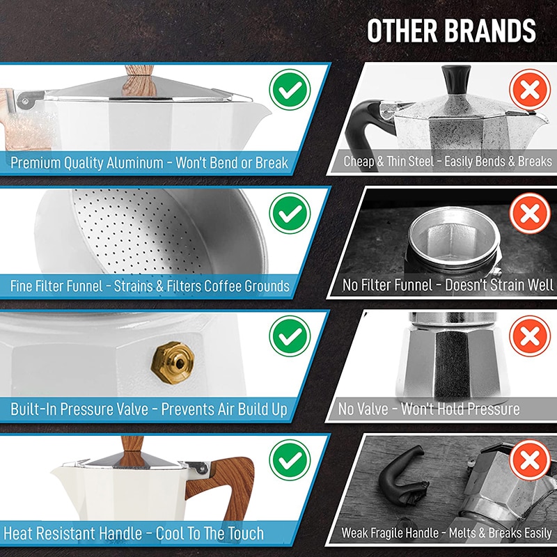 1. Makes Great Tasting Coffee: Classic Italian moka pot notorious for making the best traditional espresso quick & easy. Durable cast aluminum body with pressure valve for higher caffeine extraction and flavor. Depending on bean variety and grind selection, this espresso maker can create foam emulsion or crema. Heat resistant handle and lid knob for secure pouring.