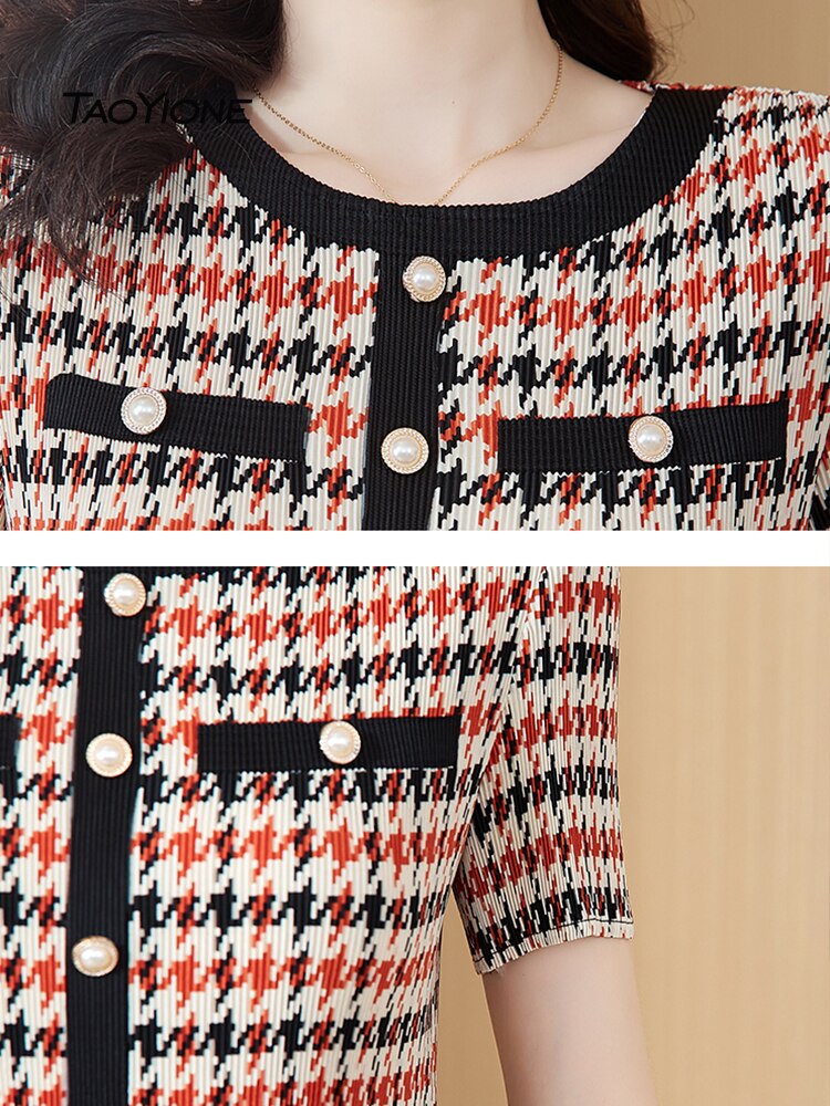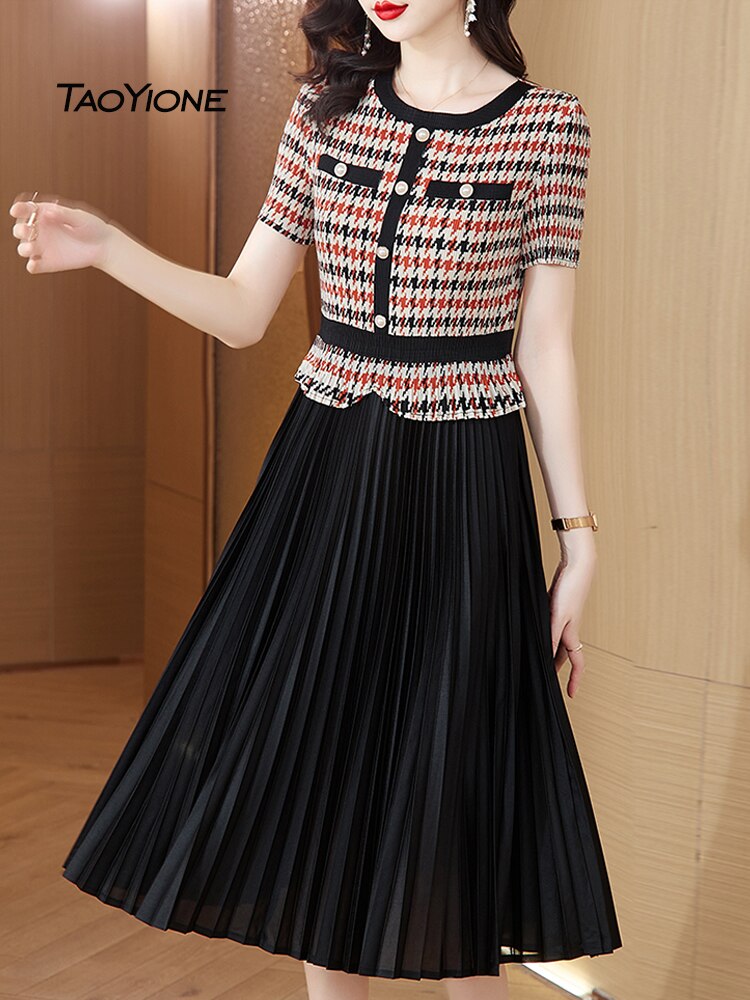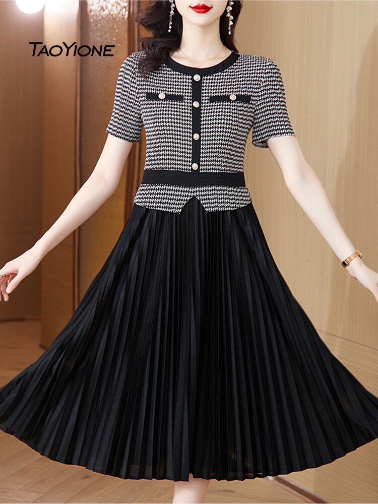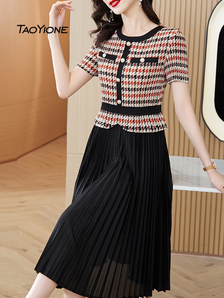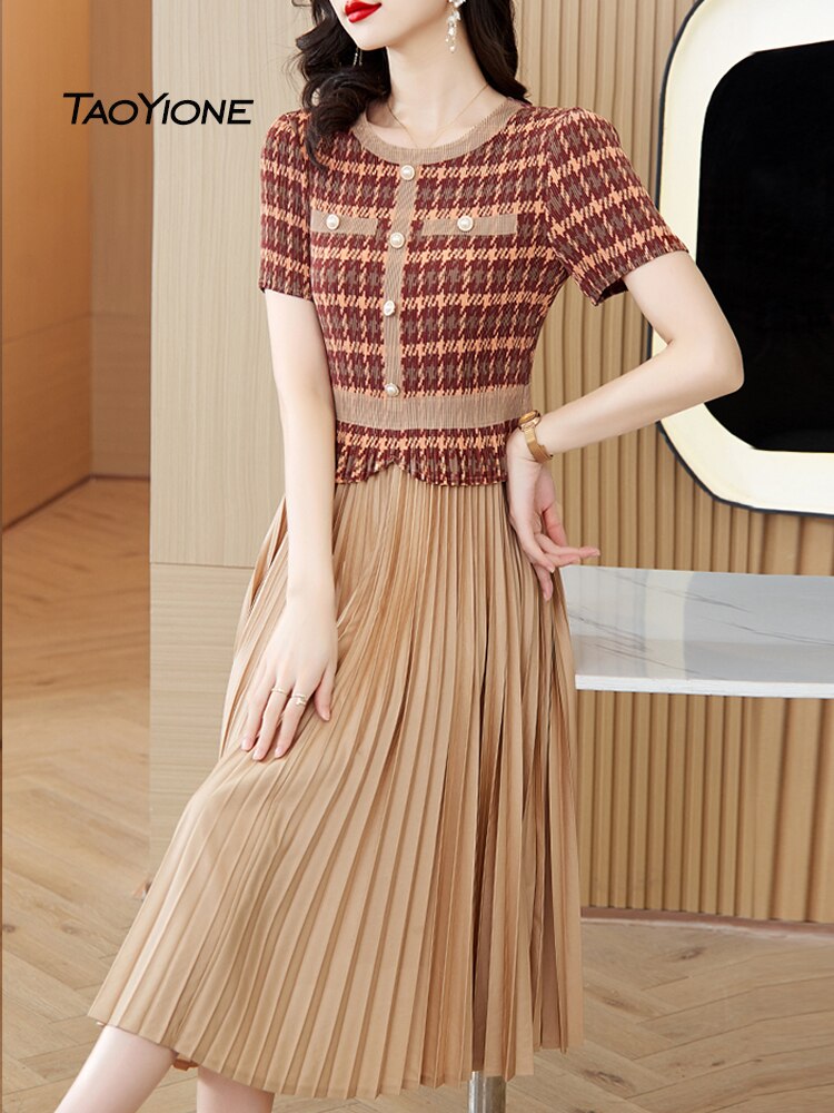 2023 Vestidos Vintage Summer Chiffon Printed Dress Women Elegant Pleated Midi Short Sleeve O-Neck Dress Female Robe Lady Dresses