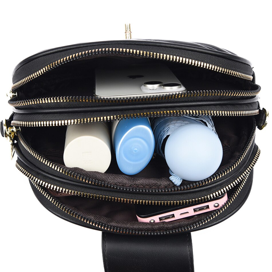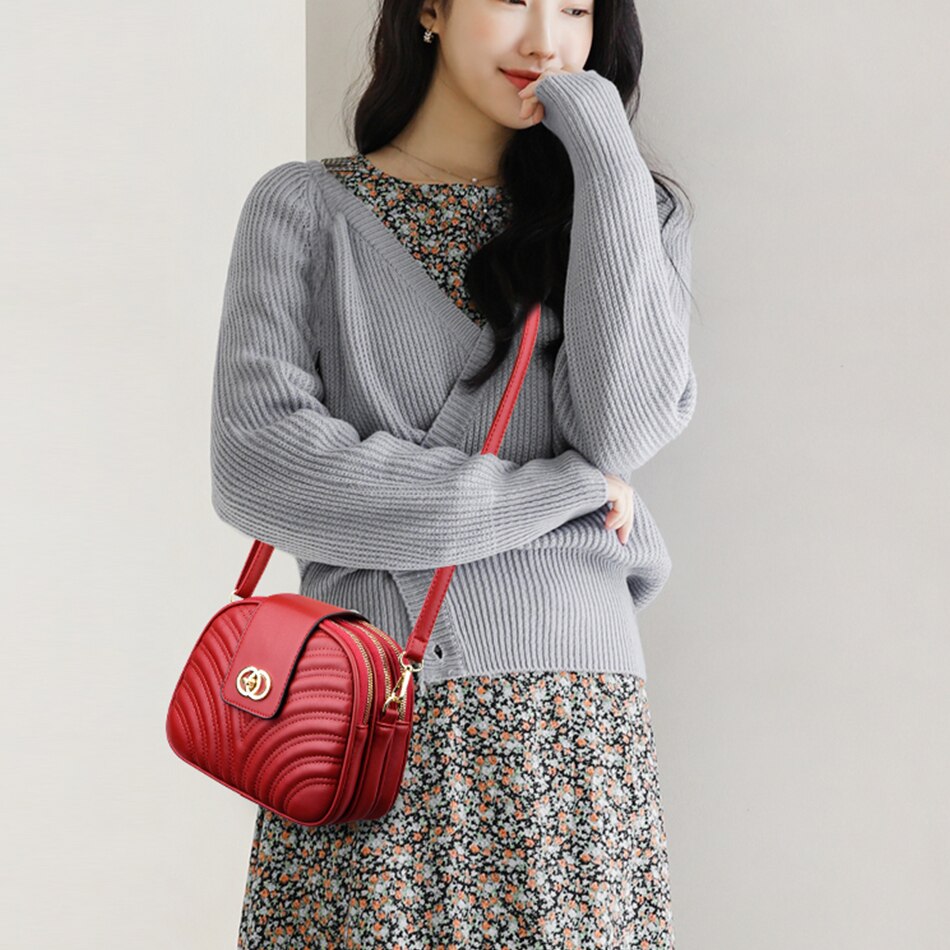 Fashion Women's Bag Solid Color Shoulder Messenger Bag Simple Elegant High-quality Leather Multi Layer Zipper Small Bag Handbag